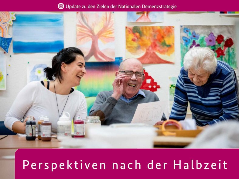 Die Unterstützung von Menschen mit Demenz und ihren Angehörigen ist eine langfristige gesamtgesellschaftliche Aufgabe, die auch über die Umsetzung der Nationalen Demenzstrategie hinausgehen kann. Die Weiterentwicklung wird durch die kontinuierliche Zusammenarbeit der teilnehmenden Akteure und die zukünftigen Handlungsbedarfe bestimmt sein.
