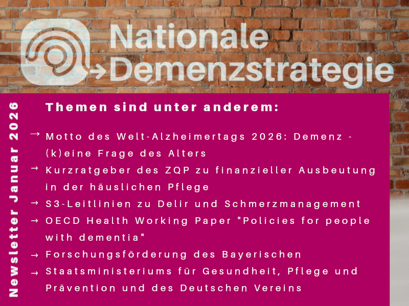 Die Bundesregierung hat hierfür gemeinsam mit zahlreichen Partnern aus Politik, Gesellschaft und Forschung eine Strategie entwickelt: die Nationale Demenzstrategie.