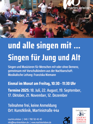 Mitglieder der Deutschen Gesellschaft für Musikgeragogik (DGfMG) bringen die Woche der Demenz 2025 zum Klingen. Am 19. September lädt Franziska Niemann in Hamburg zu einem offenen Singen für Menschen mit und ohne Demenz ein. Am 20. September gestaltet Karin Knitt die Auftaktveranstaltung zur Woche der Demenz in Dresden mit einem musikalischen Beitrag sowie Workshops zur Veeh-Harfe, die die besondere Wirkung von Musik für Menschen mit und ohne Demenz erlebbar machen. Darüber hinaus halten Mitglieder der DGfMG Vorträge zum Thema "Demenz und Musik" auf Einladung von Senioren- und Pflegestützpunkten, die im Rahmen der Demenzwoche 2025 eigene Fachtage organisieren.