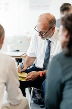 Die Teilnehmer*innen der Gruppe 3 sprachen über die "Zusammenarbeit im Versorgungsnetz", hier stand die stand die hausärztliche Versorgung von Menschen mit Demenz im Fokus. Es wurden Ideen und Beispiele diskutiert, wie die Weiterbildung der Ärzt*innen verbessert und die Vernetzung der Praxen im Versorgungsnetz gestärkt werden kann. Dazu boten jeweils zwei Impulsvorträge Input für die anschließende Diskussion.