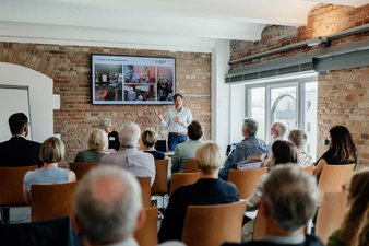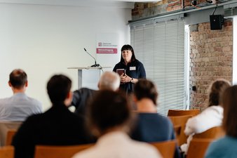 Priv.-Doz. Francisca Rodriguez vom DZNE stellte das Projekt "Soziale Ressourcen in der Lebenswelt von Menschen mit Demenz" vor. Forschende stellten hier fest, dass durch regelmäßige soziale Interaktionen und die Teilnahme an Aktivitäten Symptome von Demenz gelindert werden können. Die Untersuchung belegt zudem, dass persönliche und telefonische Kontakte im Vergleich zu technischen Lösungen eine höhere Effektivität aufweisen.
