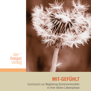 Das von Expert*innen des Deutschen Hospiz- und PalliativVerbandes e. V. und der Deutschen Alzheimer Gesellschaft überarbeitete Curriculum "Mit-Gefühlt" unterstützt unter anderem Ehrenamtliche, die Menschen mit Demenz in ihrer letzten Lebensphase begleiten. Es vermittelt praxisnah die Bedürfnisse von Menschen mit Demenz in dieser sensiblen Zeit. Die Herausgeber*innen betonen hier zudem, wie wichtig es ist, dass alle, die Sterbende begleiten, über ein fundiertes Wissen zum Thema Demenz verfügen.